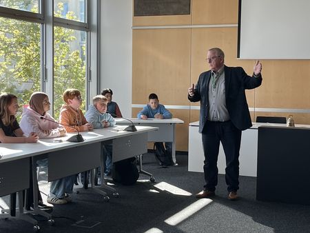 Die 5. Klassen im Rathaus, der Bürgermeister erklärte uns alles und…
