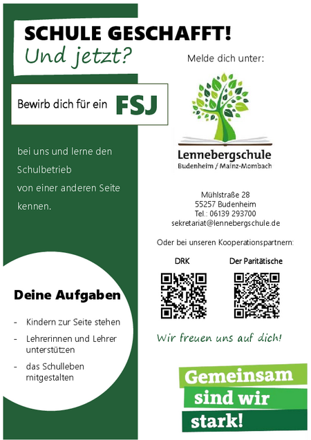 Bewirb dich für ein FSJ bei uns und lerne den Schulbetrieb von einer…